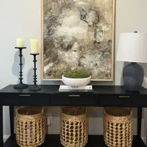 If you’d prefer to stick to a true abstract art piece but with darker colors for the winter months, check out Victori Atelier. Victoria paints amazing abstract pieces and then offers them as prints or originals. The prints can be ordered in lots of different sizes so you can easily find the right size for your space.